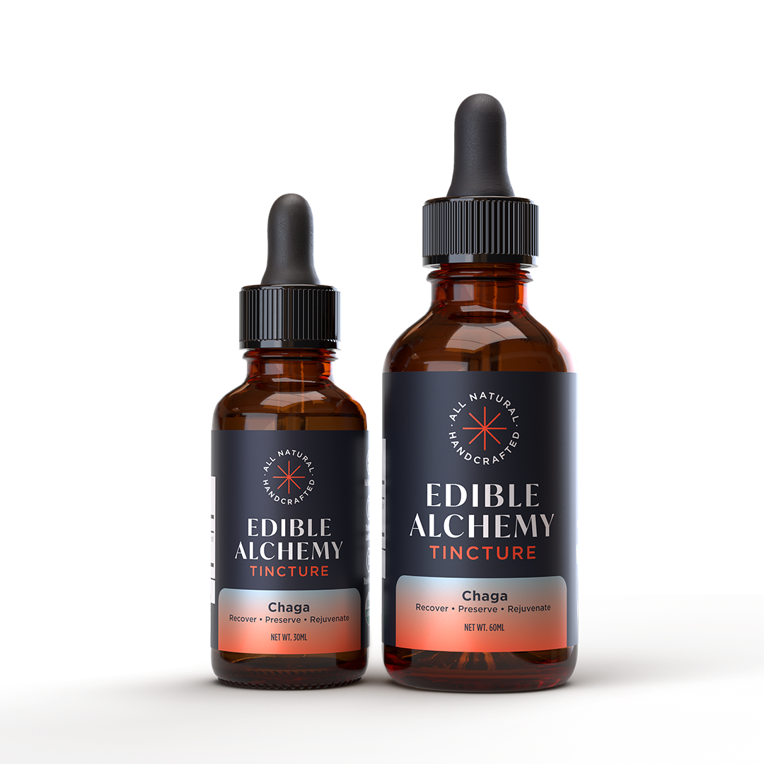 Our Organic Chaga Extracted Mushroom Tincture starts with the USA-grown, organic Chaga (Inonotus obliquus). The best mushrooms nature has to offer, or your money back, guaranteed! Rest assured knowing that all Edible Alchemy mushroom tinctures are made from Certified Organic mushrooms, steam-processed then triple-extracted for bioavailability and potency.* And, we third-party test all products for safety and efficacy — including heavy metals and microbes